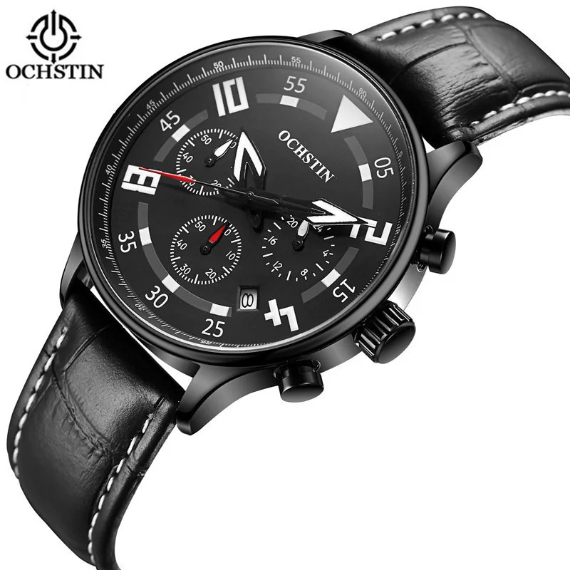 OCHSTIN 2018 Fashion Sale Genuine Leather Strap Multifunction Wrist Watches Men's Quartz-watch Relo