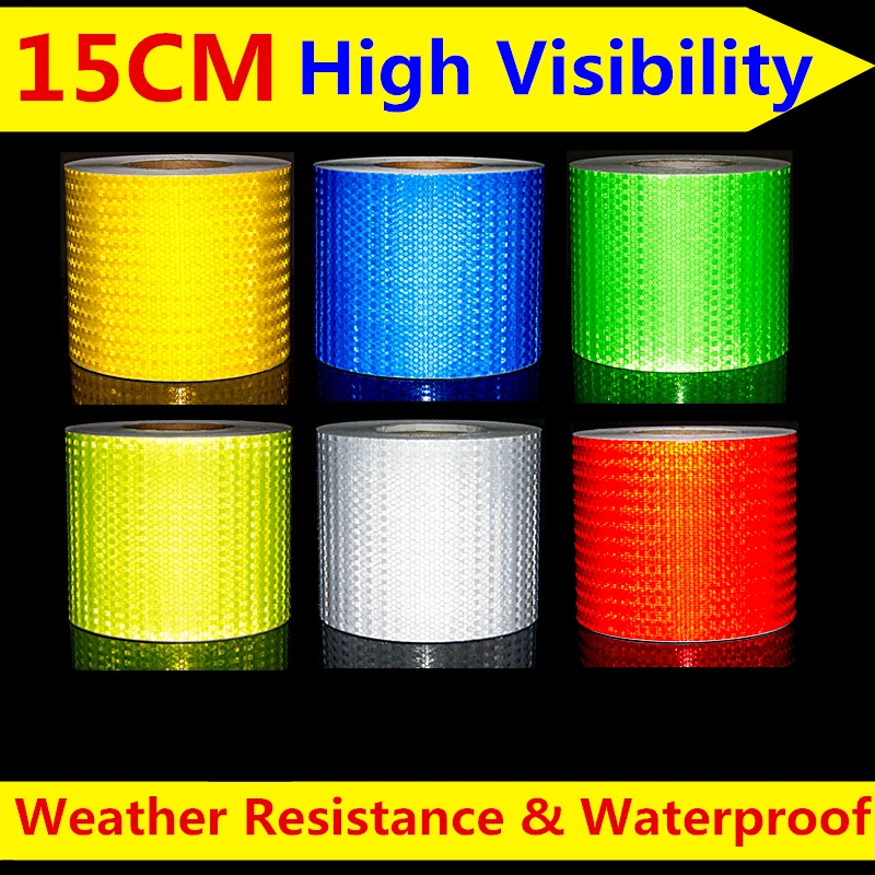 Hot Sale 7 Color 15cm*50m car-styling Safety Mark Auto Decoration Self Adhesive Warning Tape Car Bo